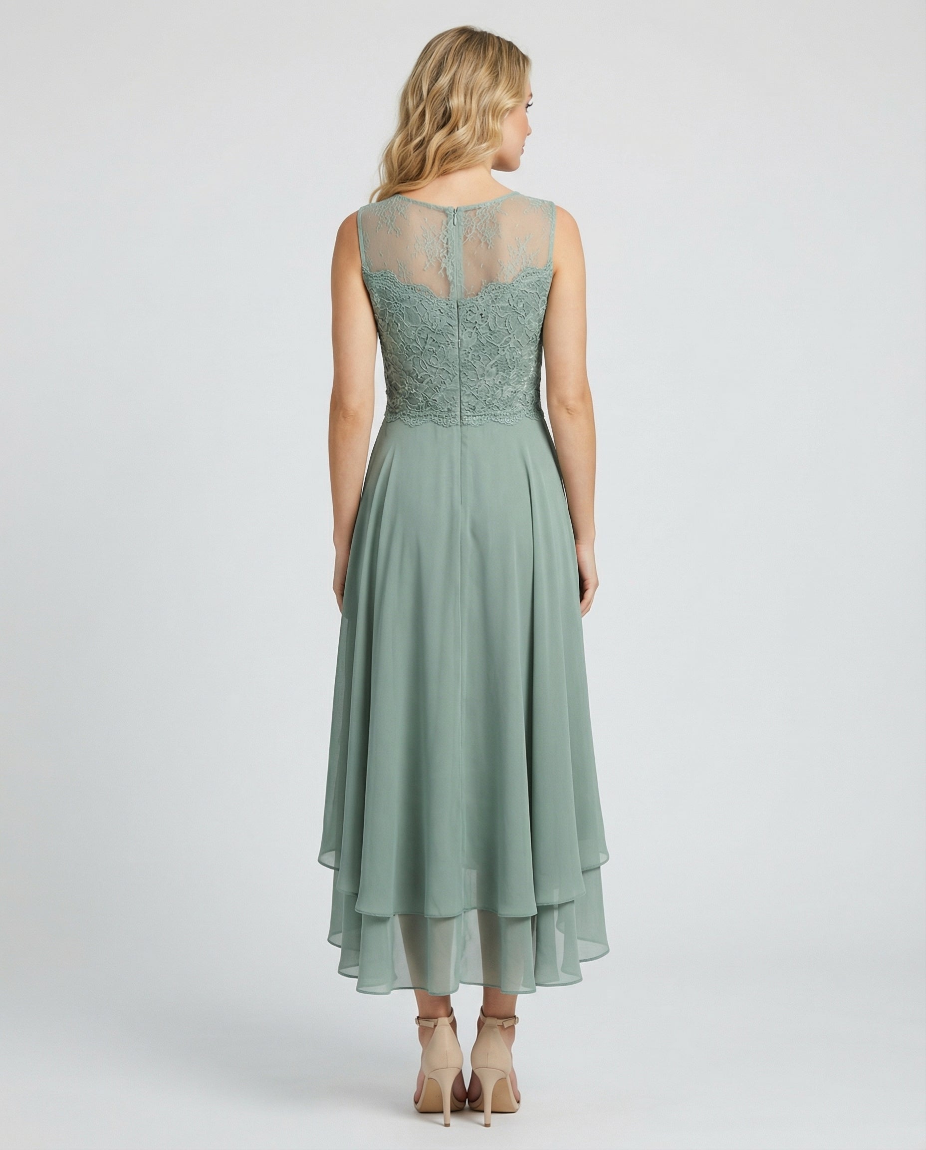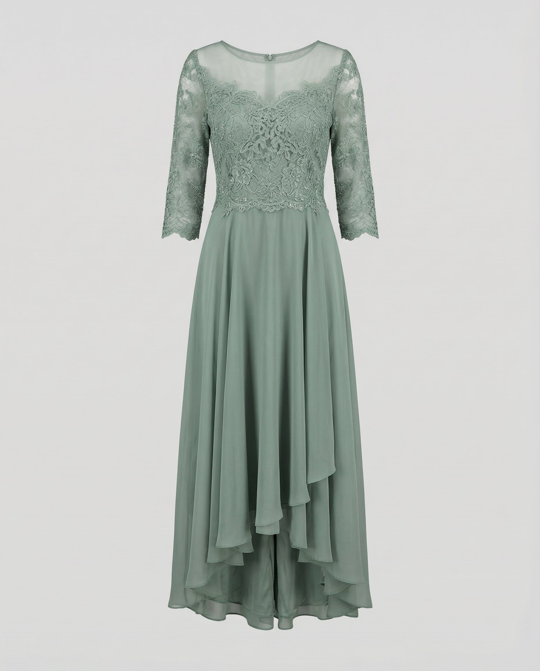Denna eleganta aftonklänning är designad för festliga tillfällen där ett stilrent och sofistikerat uttryck står i fokus. Den ankellånga passformen kombineras med en spetsdetaljerad överdel som ger klänningen ett feminint och balanserat utseende. Passar utmärkt för bröllop, formella tillställningar eller som tärnklänning.