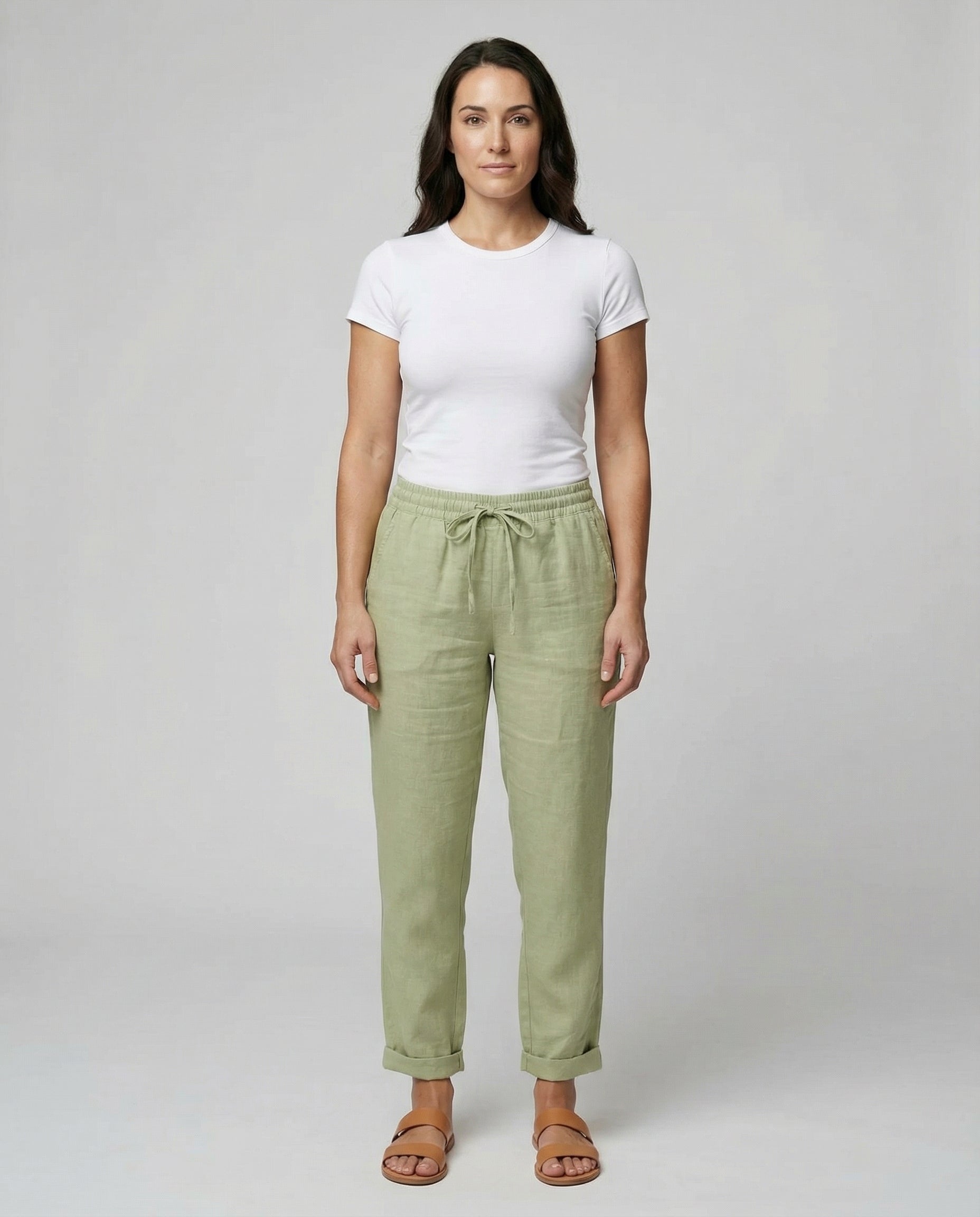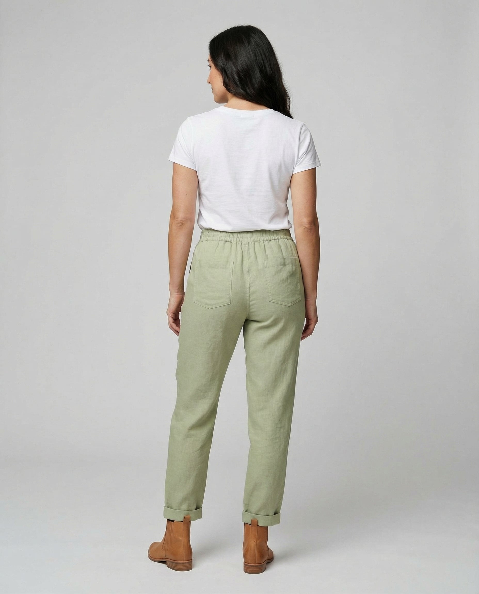 Dessa linnebyxor för damer är designade för varma dagar och erbjuder en lätt och luftig känsla. Det andningsbara linnetyget ger komfort under sommaren och gör byxorna lämpliga för både avslappnade och mer uppklädda sammanhang.