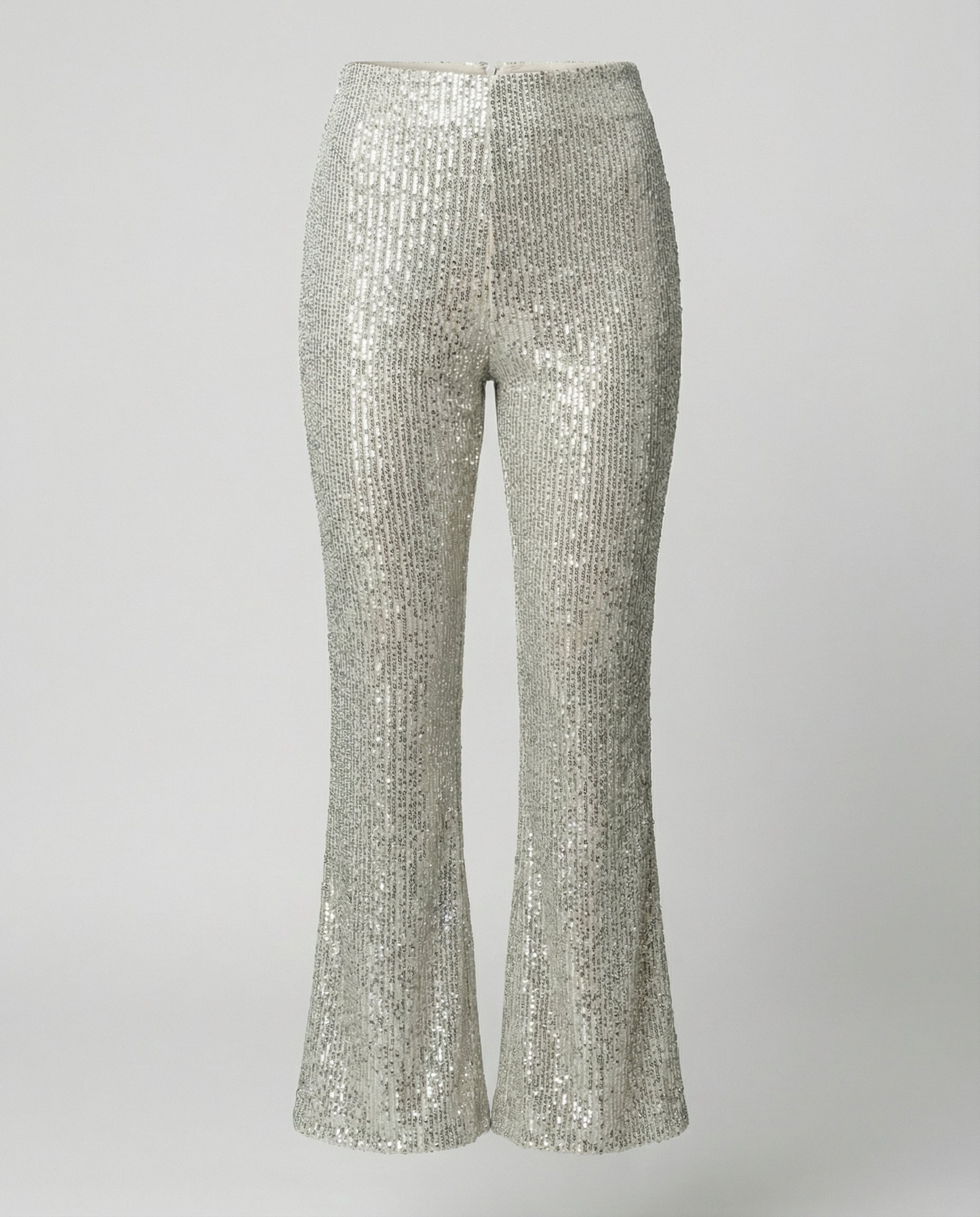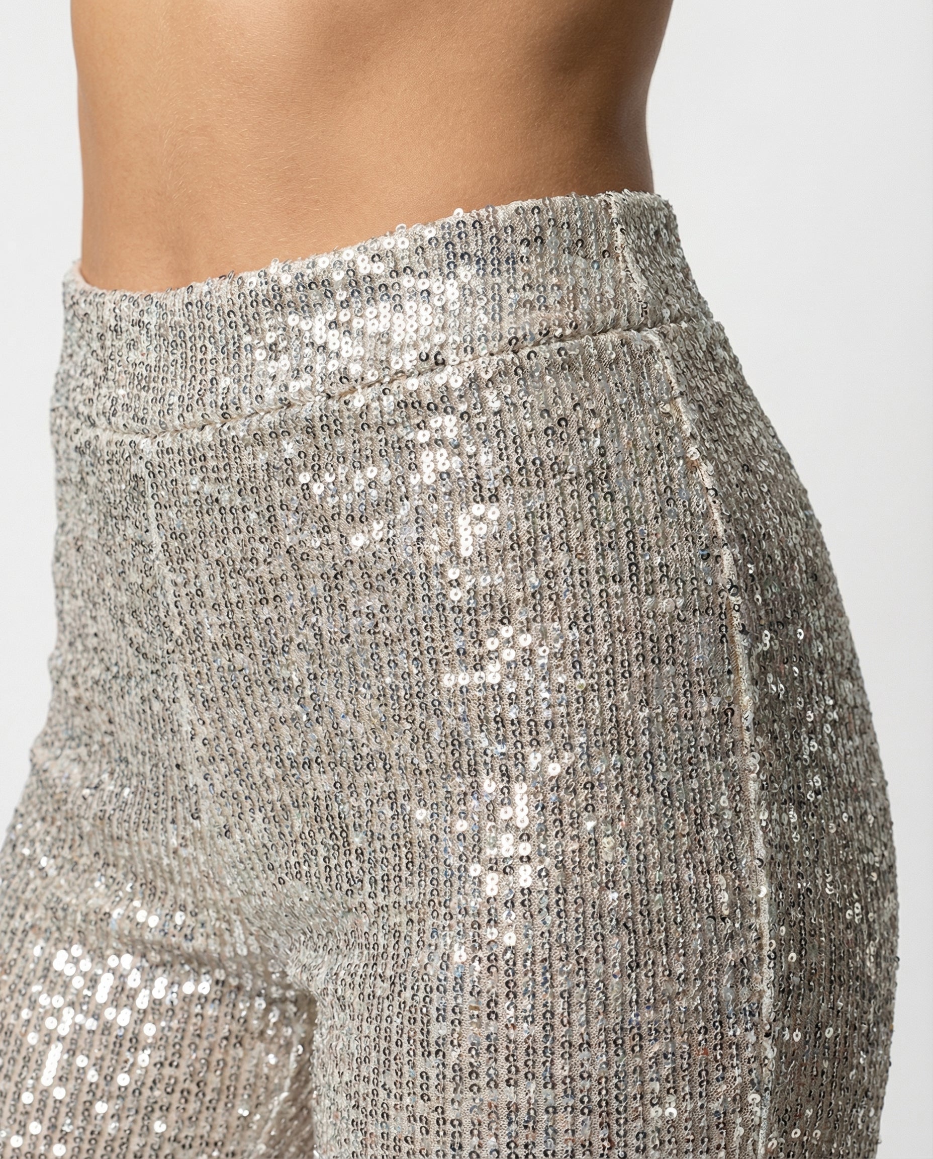 Dessa paljettbyxor för damer är designade för att ge ett elegant uttryck vid speciella tillfällen. Den höga midjan framhäver silhuetten, medan de vida benen skapar ett balanserat och modernt intryck. Passar för kvällsevenemang och festliga sammanhang.